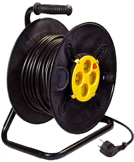 Černý prodlužovací kabel na navinovacím bubnu pro vnitřní použití. Disponuje 4 zásuvkami, tepelnou pojistkou a kabelem s průřezem 1,5 mm2. Zásuvky a zástrčka jsou vyrobeny z plastu, izolace z PVC.