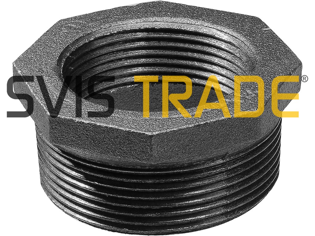 Závitová tvarovka z temperované litiny, druh – redukce (přechod) s trubkovými závity vnitřní x vnější, černé provedení. Vnější závit R a vnitřní závit Rc je kuželový pro spoje těsnící na závitech dle ISO 7-1.
