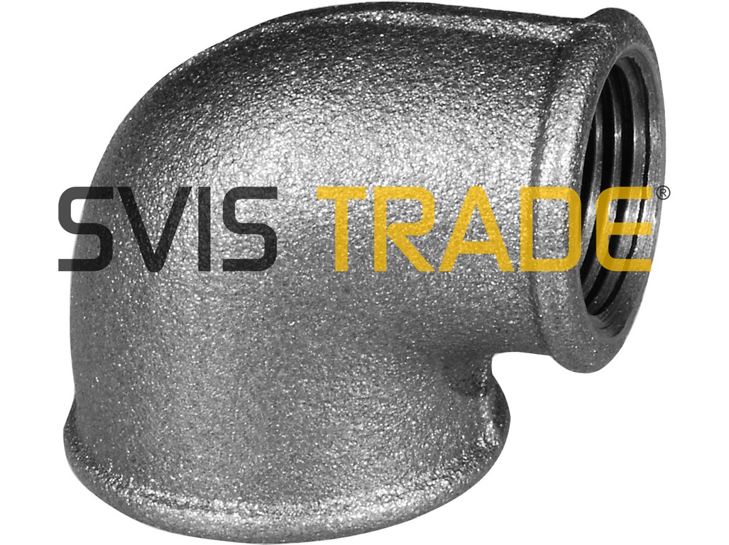 Závitová tvarovka z temperované litiny, druh – koleno 90° s redukovaným průchodem s trubkovými závity vnitřní x vnitřní, černé provedení. Vnitřní závity Rc jsou kuželové pro spoje těsnící na závitech dle ISO 7-1.