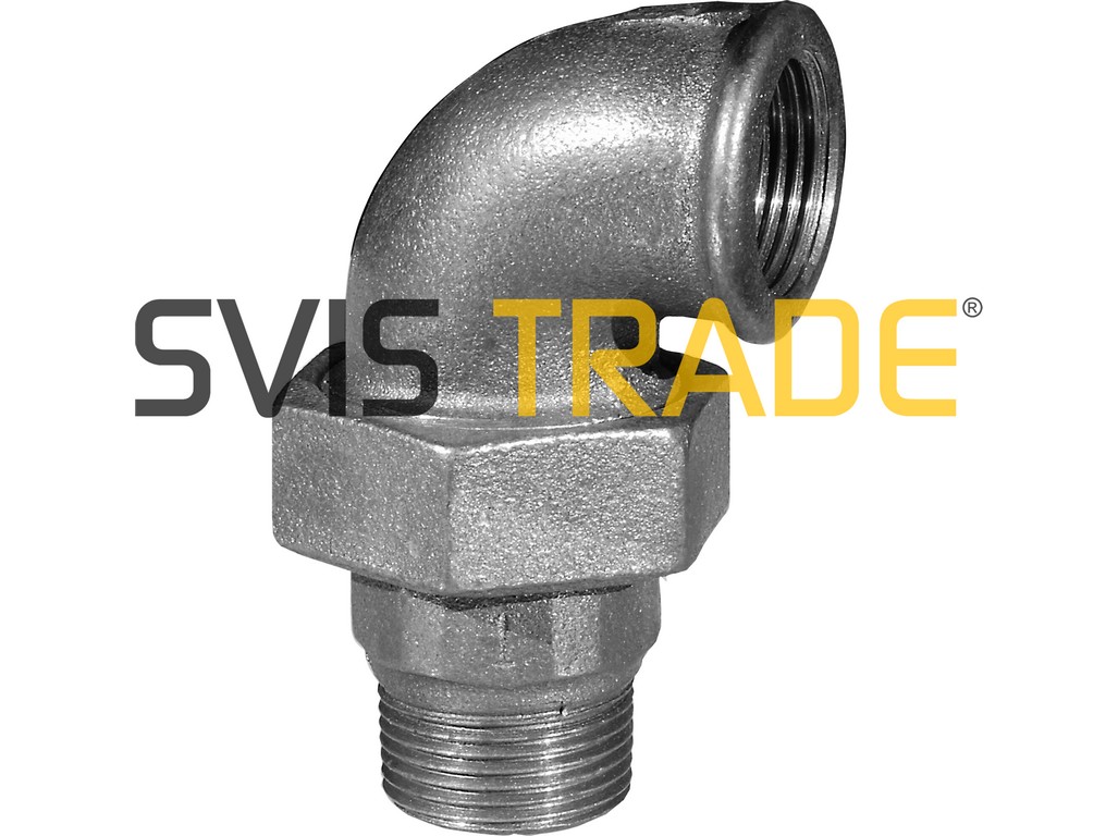 Závitová tvarovka z temperované litiny, druh – rohové šroubení s plochým sedlem s trubkovými připojovacími závity vnitřní x vnější, černé provedení. Vnější závit R a vnitřní závit Rc je kuželový pro spoje těsnící na závitech dle ISO 7-1.