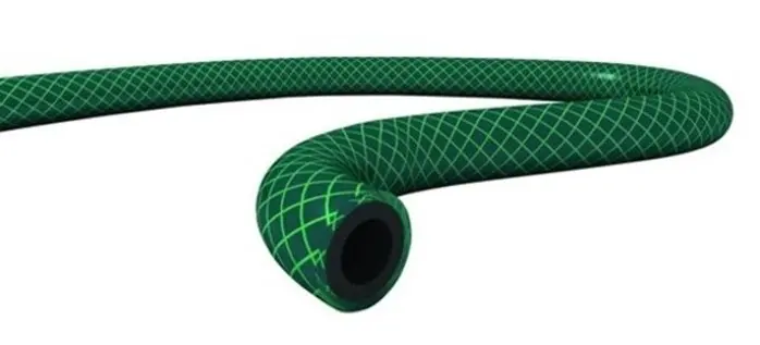 Zahradní hadice třívrstvá se vyznačuje vysokou odolností vůči povětrnostním podmínkám a zvýšenou odolností vůči mechanickému poškození díky třívrstvé struktuře vyztužené pletenou křížovou textilní výztuží. Kromě toho materiály, ze kterých byl vyroben, zabraňují usazování řas uvnitř hadice.