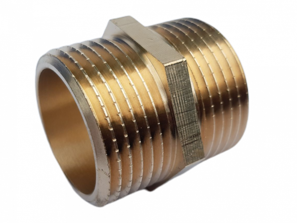 Mosazná vsuvka (dvojnipl) 1/4" s vnějšími závity.