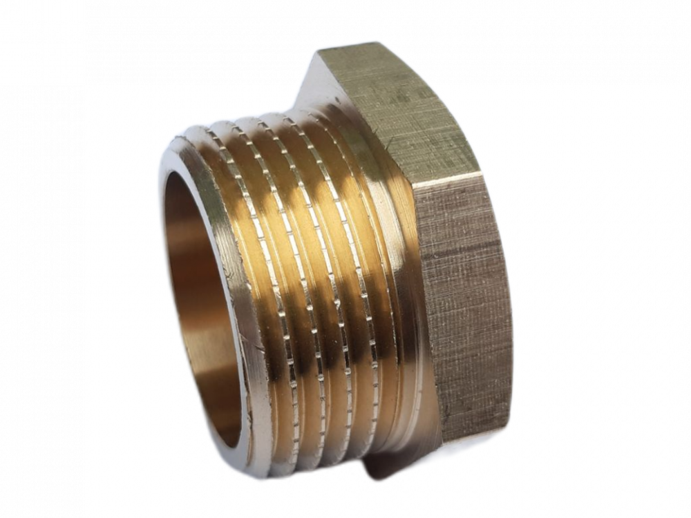 Mosazná zátka s vnějším závitem.