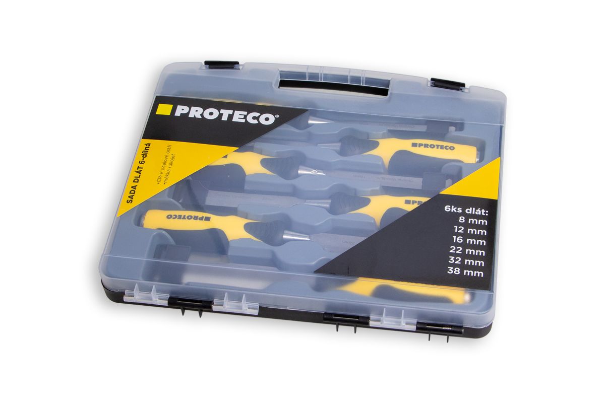 Sada dlát PROTECO vyrobených z kvalitní CrV oceli zaručující vysokou a přesnou kvalitu zpracování. Sada obsahuje 6 ks dlát (8, 10, 14, 18, 22, 32 mm). Mekčená rukojeť zajišťuje pohodlnou a dlouhotrvající práci s pevným úchopem. Čepele jsou přesně broušené pro maximální ostrost. Dláta disponují poniklovanou ocelovou údernou plochou, která je pevná a odolná.