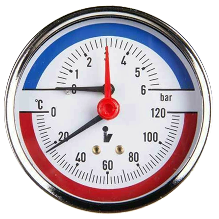 - Termomanometr, zadní připojení 1/2'' , 0–6 bar