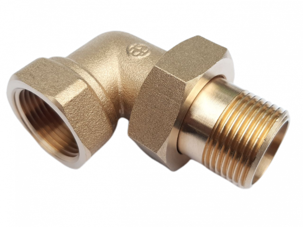 Mosazné topenářské šroubení rohové s plochým těsněním